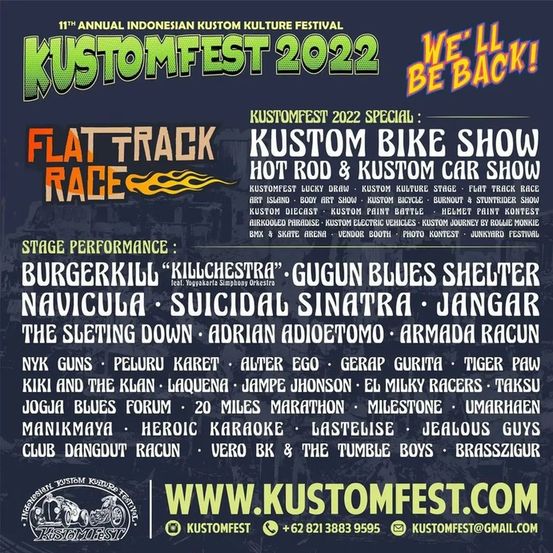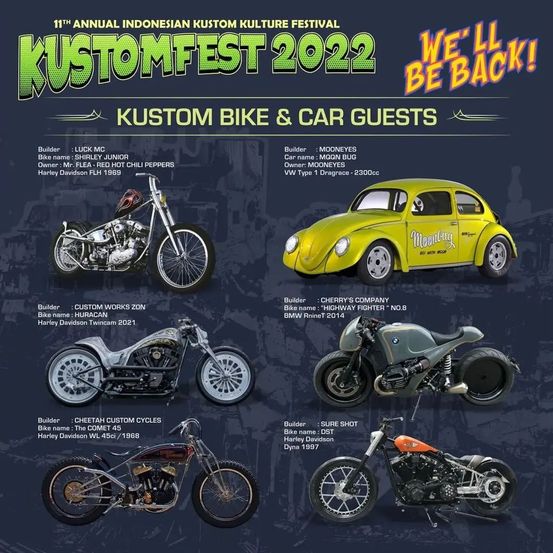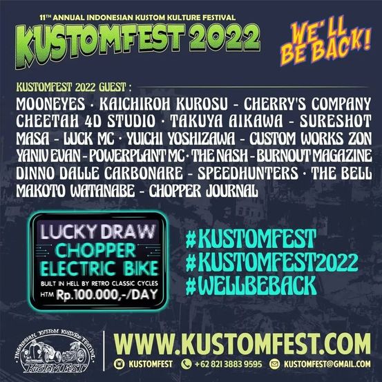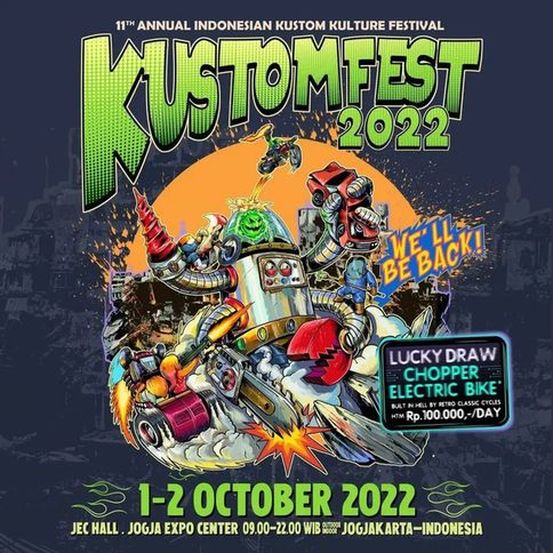 Wahai pecinta kustom… Sebentar lagi Lebaran dab ! See you at KUSTOMFEST 2022 – We’ll Be Back, 1-2 October 2022, JEC Hall Jogja Expo Center (Indoor & Outdoor)