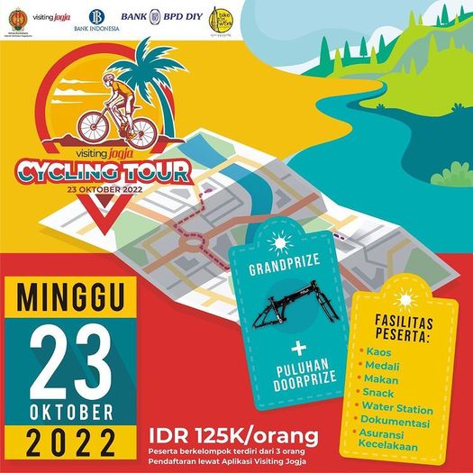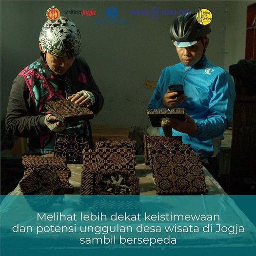 Siapkan sepedamu dan ikuti jelajah seru desa wisata yuk. Sambil bersepeda, kita bisa menikmati keunikan desa wisata di Bantul. Kegiatan ini bertajuk “Visiting Jogja Cycling Tour”. Konsep kegiatannya bersepeda berkelompok, yang terdiri dari 3 orang. Kalian juga harus memainkan games seru berhadiah disetiap check point.