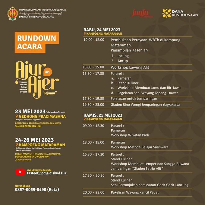 Acara dapat disaksikan secara live melalui YouTube Dinas Kebudayaan DIY : taste of jogja disbuddiy