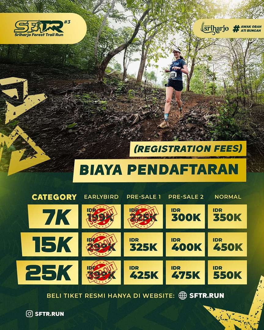 Buat kamu yang belum daftar SFTR #3, jangan sampai ketinggalan. Nikmati sensasi berlari di tengah hutan, menyusuri jalur baru, dan tantangan seru khas Sriharjo.
