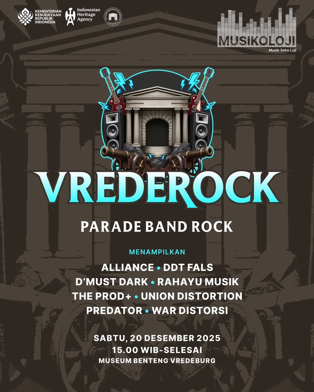 VREDEROCK – Parade Band Rock di Museum Benteng Vredeburg Yogyakarta siap menjadi agenda musik paling ditunggu akhir tahun 2025. Acara musik rock Yogyakarta ini menghadirkan deretan band rock lokal dengan energi penuh, memadukan pertunjukan musik modern di ruang cagar budaya bersejarah.