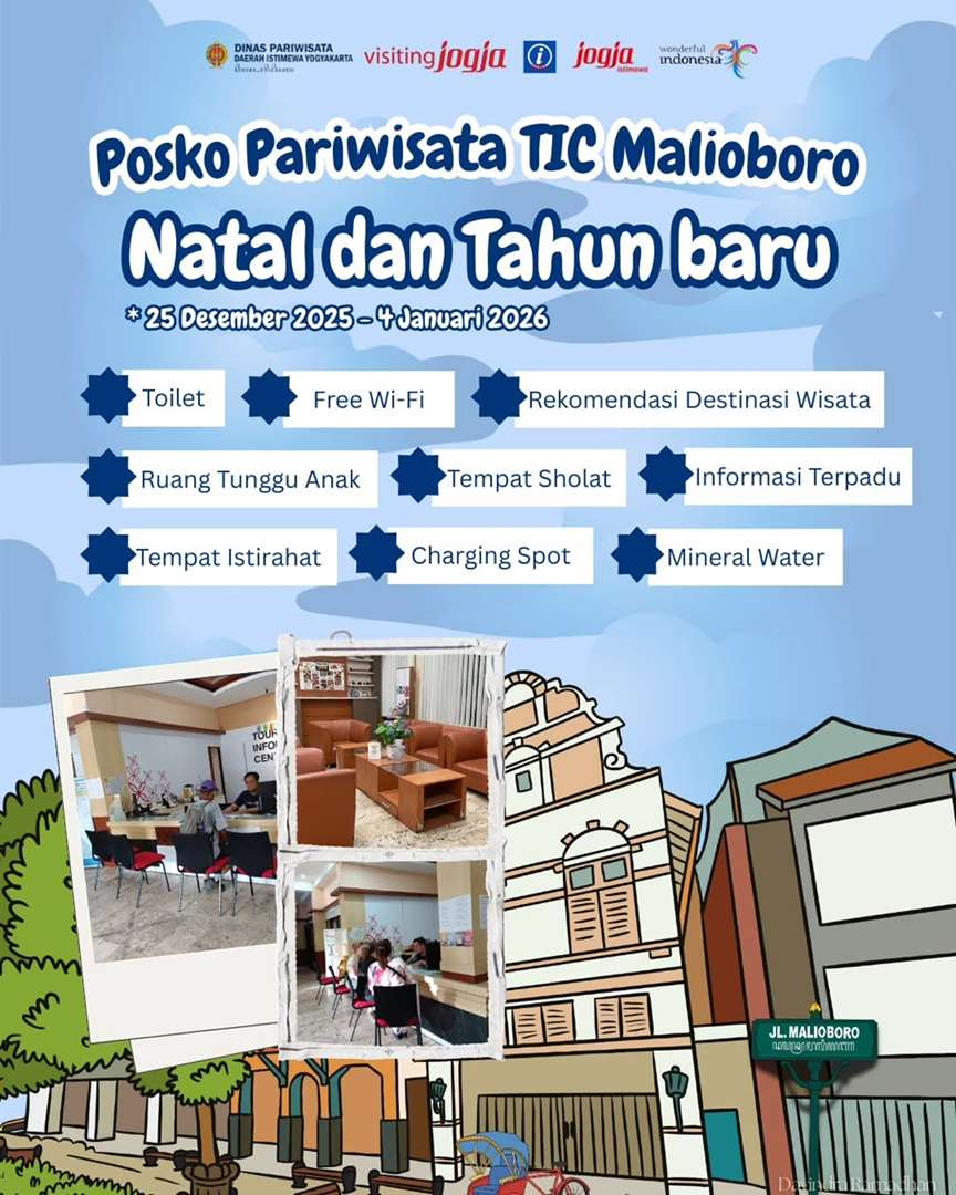 Liburan ke Jogja makin nyaman dengan Posko Pariwisata TIC Malioboro yang siap melayani wisatawan mulai 25 Desember 2025 – 4 Januari 2026.