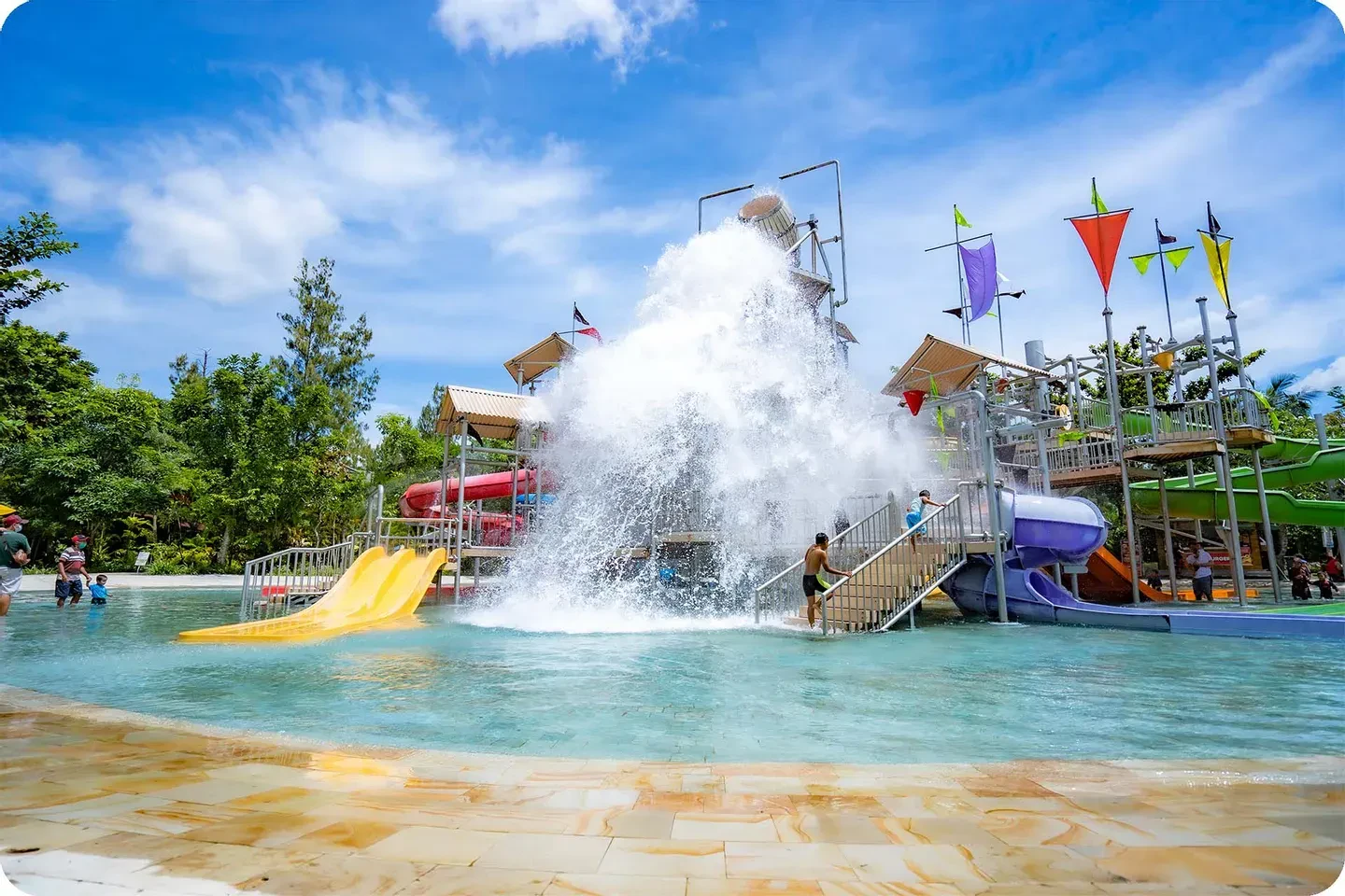 Waterboom Jogja dirancang sebagai tempat rekreasi keluarga yang nyaman dan aman. Di saba menghadirkan berbagai wahana air seru, area bermain anak, serta fasilitas pendukung yang lengkap untuk semua kalangan.
