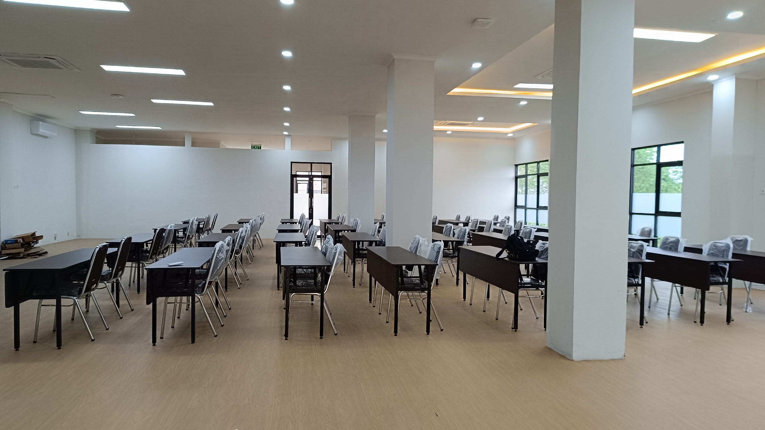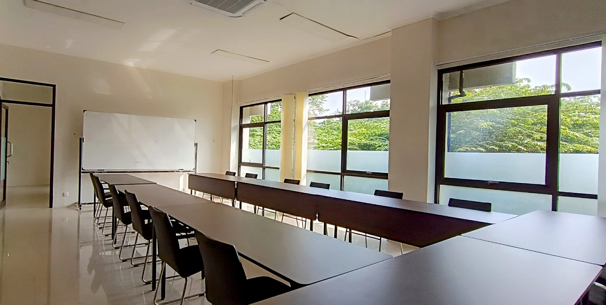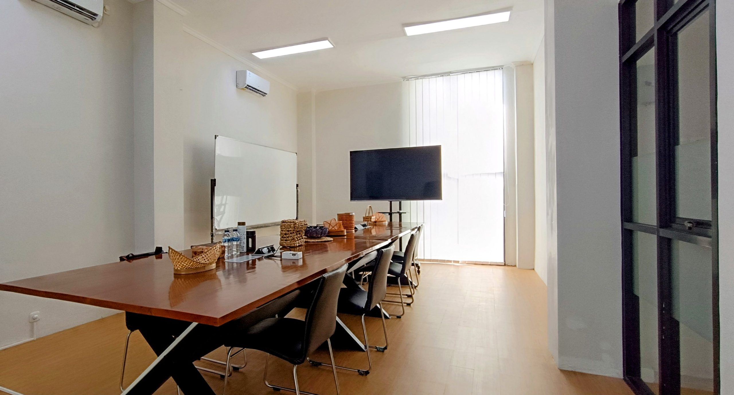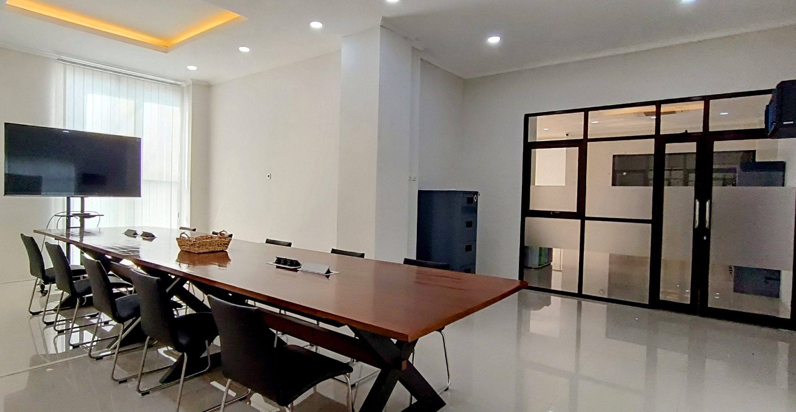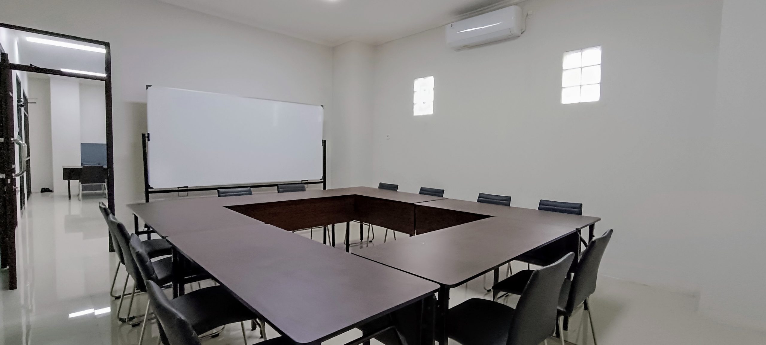 Fasilitas: Televisi 55″, Mic Teleconference, Kursi 10 unit, Meja, AC, Free Wifi