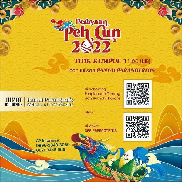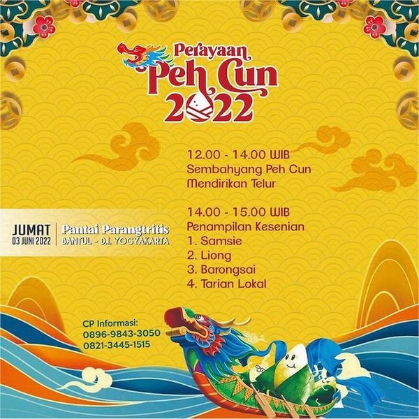 Setelah ditiadakan selama 2 tahun karena pandemi, pada tahun ini Jogja Chinese Art and Culture Center kembali mengelar Festival Peh Cun pada Jumat, 3 Juni 2022 di Pantai Parangtritis