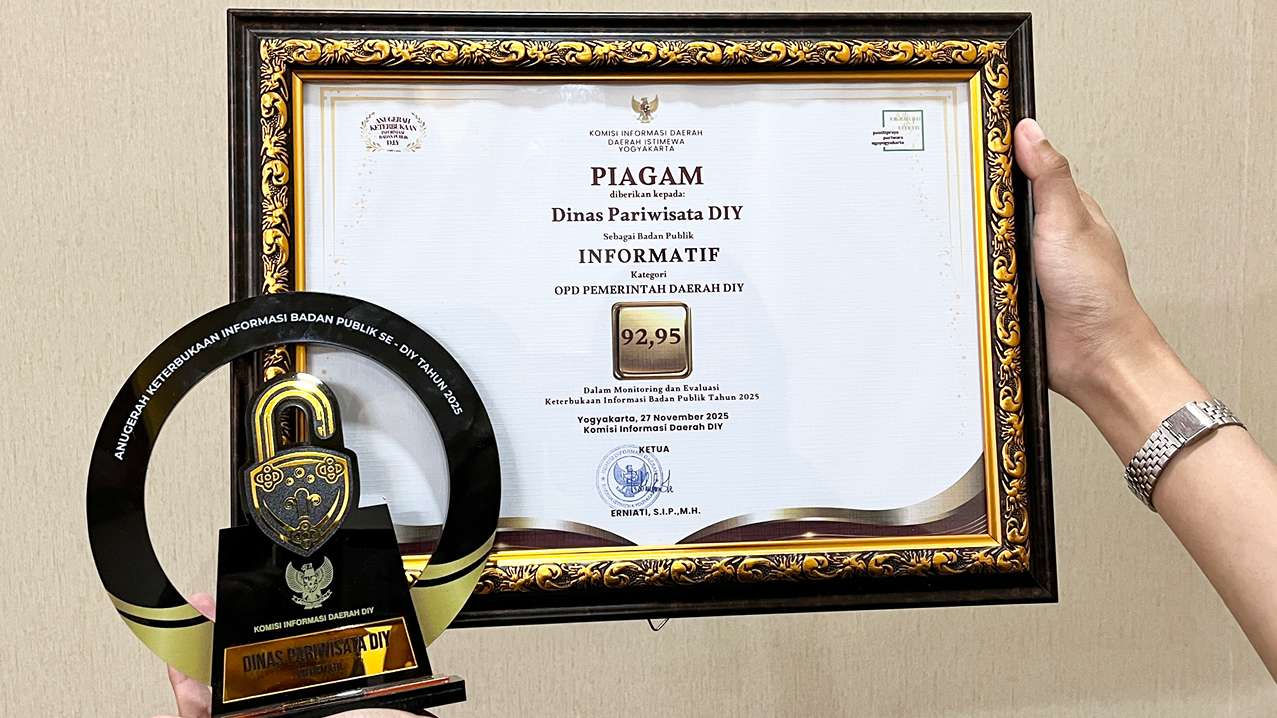 Dinas Pariwisata DIY meraih Predikat Informatif dalam Penganugerahan Keterbukaan Informasi Publik DIY 2025 yang diselenggarakan oleh Komisi Informasi Daerah DIY Kategori OPD Pemerintah Daerah DIY.
