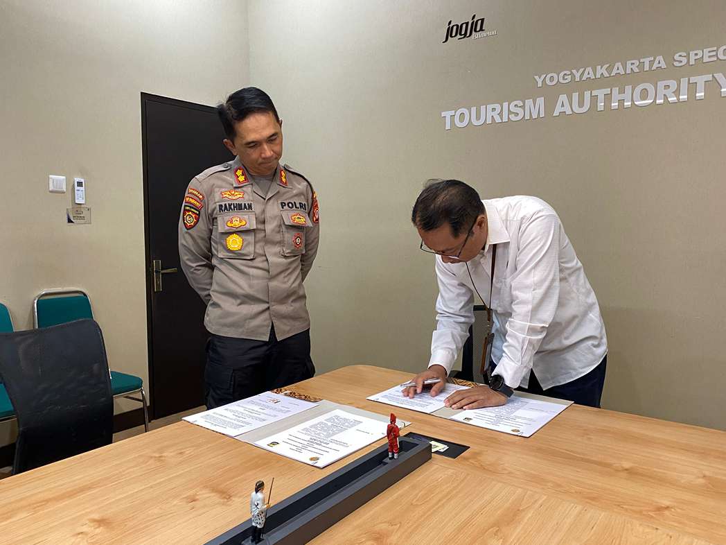 Pemerintah Daerah DIY melalui Dinas Pariwisata Daerah Istimewa Yogyakarta melakukan penandatanganan Rencana Kerja antara Kepolisian Daerah DIY dan Pemerintah Daerah DIY, Rabu (10/12/2025).
